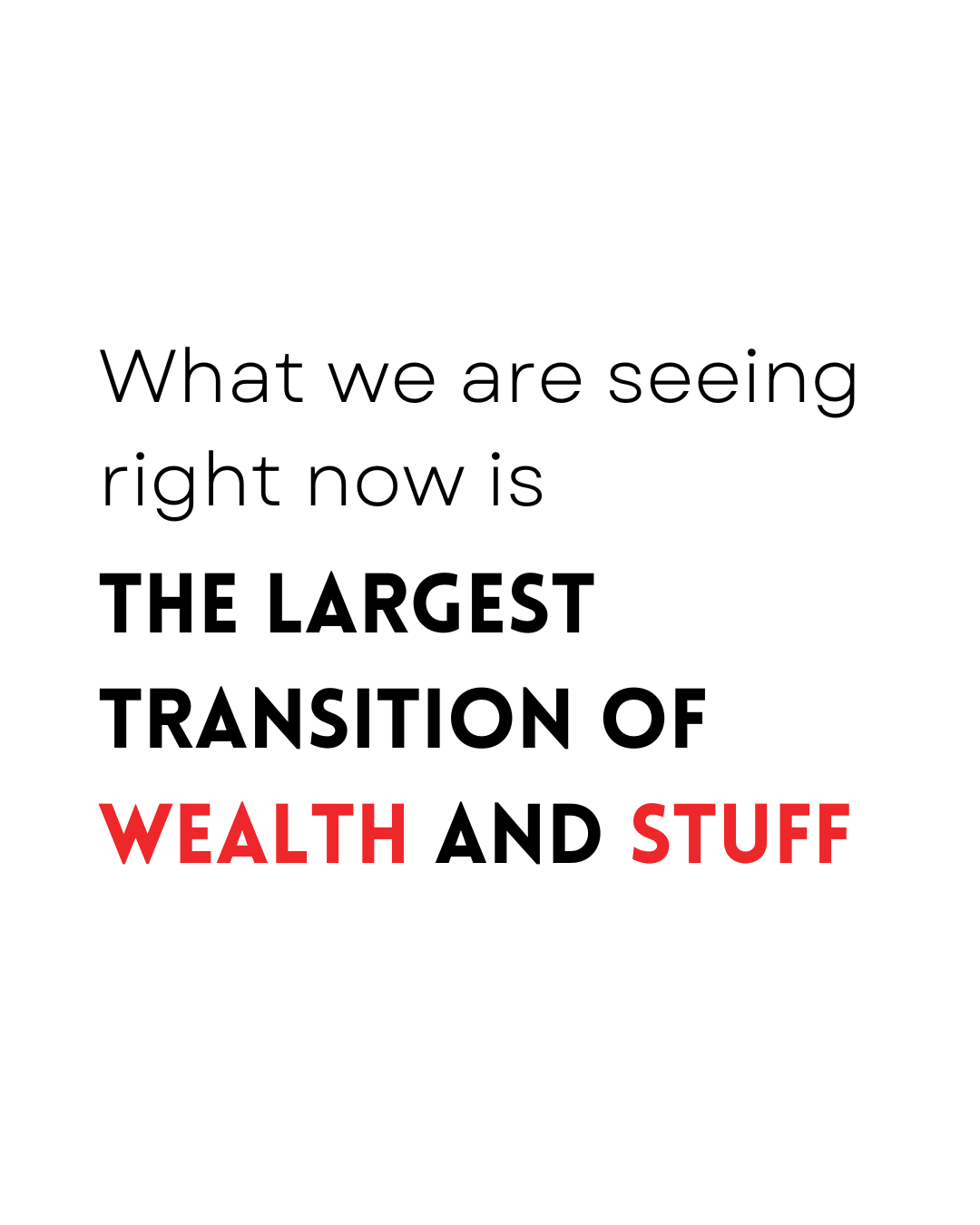 /With one generation moving out of their homes and beginning to downsize we are seeing the largest generational transition of both wealth and "stuff."